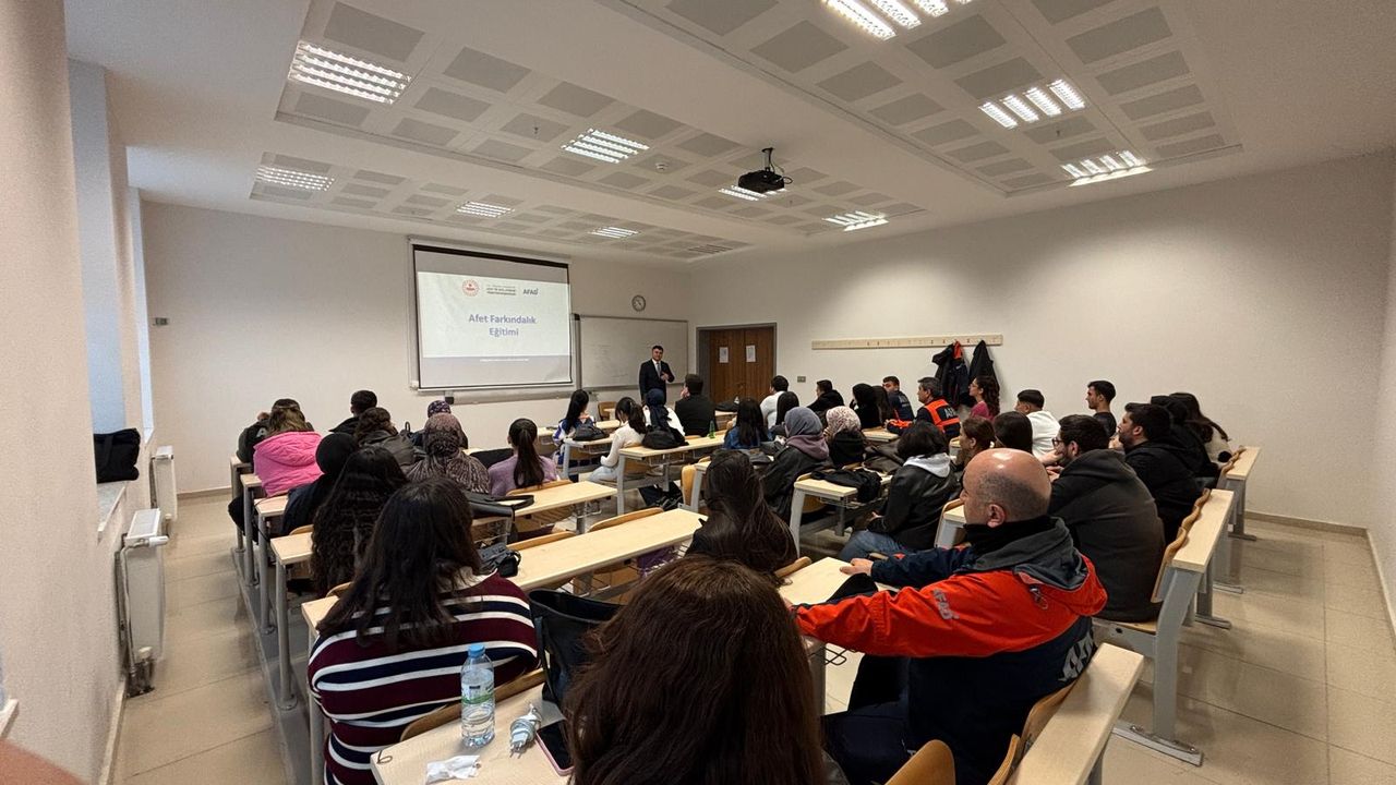 Kırşehir’de Ahi Evran Üniversitesi Mimarlık-Mühendislik Fakültesi’nde İl AFAD Müdürlüğü tarafından “Afet Farkındalık Eğitimi ve Arama Kurtarma Malzeme Tanıtımı” gerçekleştirildi. Eğitimde deprem, sel ve yangın gibi Türkiye’de sık karşılaşılan afet türleri hakkında temel bilgiler aktarıldı. Öğrencilere afet öncesi hazırlık, afet anında doğru davranış şekilleri ve afet sonrası yapılması gerekenler detaylı şekilde anlatıldı.