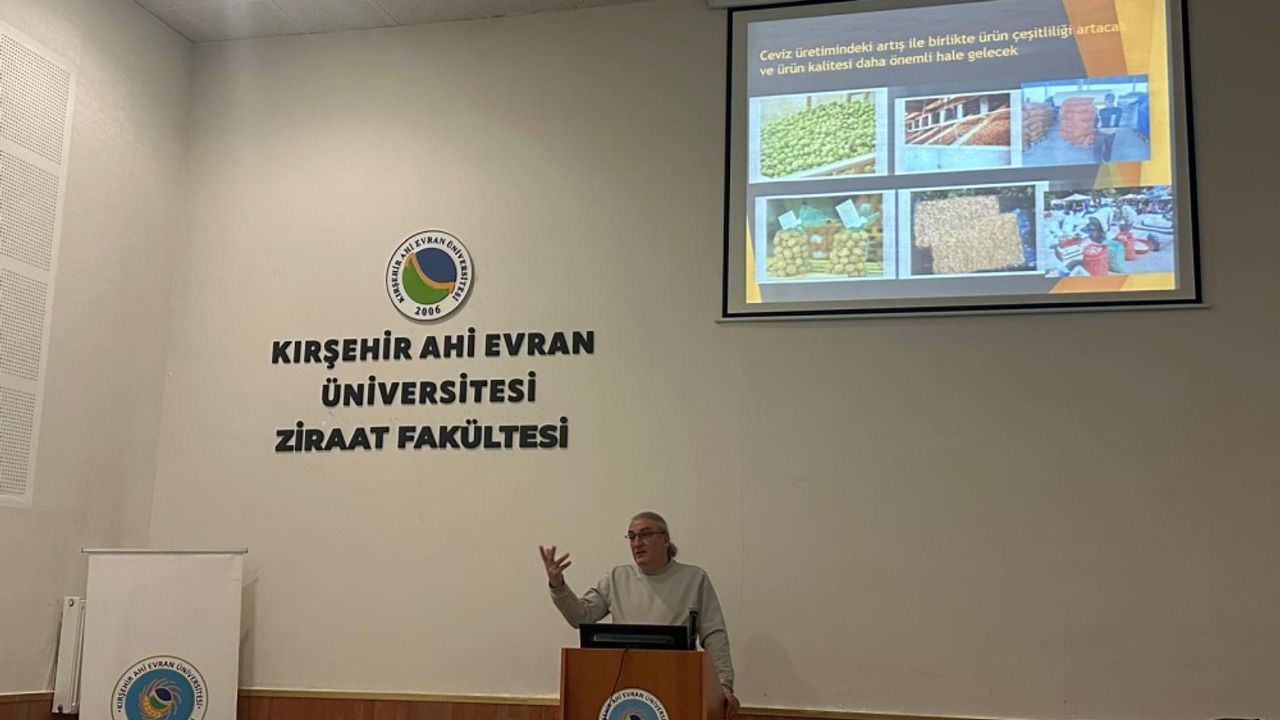 Cevizlerde kaliteyi belirleyen unsurlar Kırşehir Ahi Evran Üniversitesi Ziraat Fakültesi’nde düzenlenen konferansta ele alındı. Programda üretim süreci, kalite sorunları ve sektörün güncel durumu gündeme taşındı. Gerçekleştirilen buluşmada cevizlerin bahçeden pazara uzanan kalite yolculuğu akademik veriler ışığında değerlendirildi.