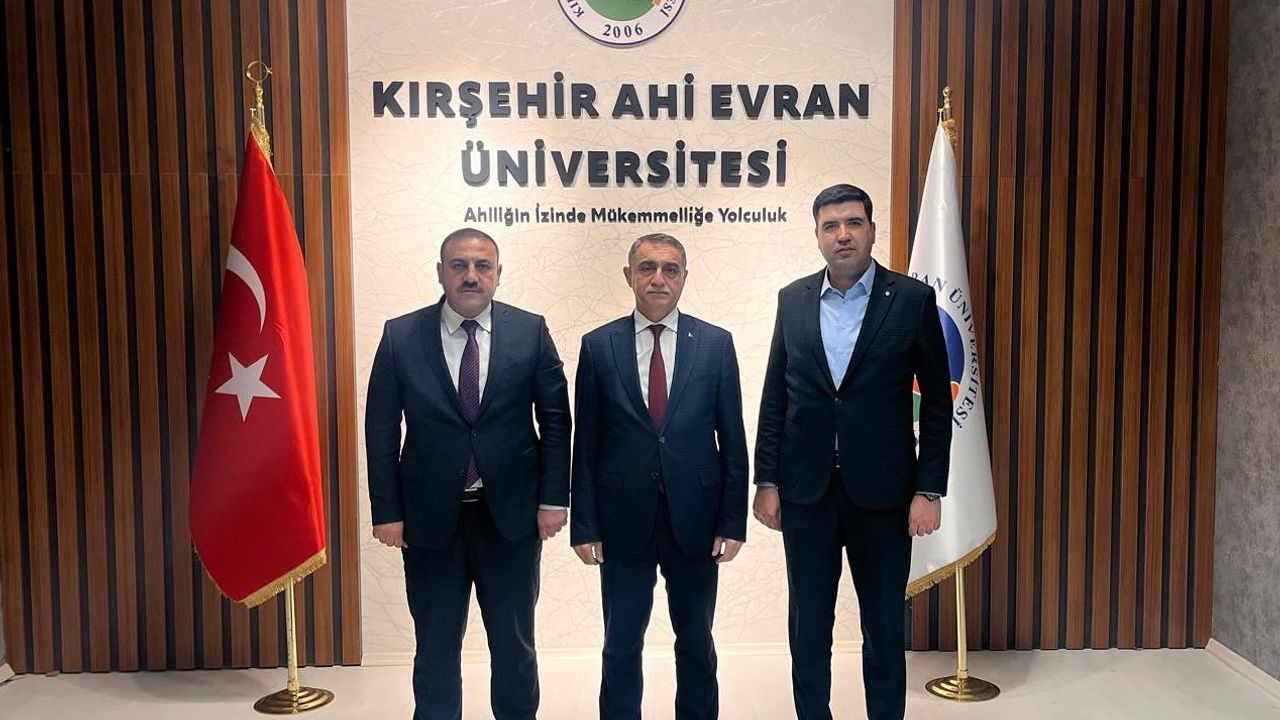 Çiçekdağ Belediye Başkanı Hasan Hakanoğlu ve İlçe Başkanı Kürşat Bek, Kırşehir Ahi Evran Üniversitesi Rektörü Prof. Dr. Mustafa Kasım Karahocagil’i makamında ziyaret etti. Görüşmede, Çiçekdağ ilçesinin eğitim, sosyal ve kültürel alanlardaki projeleri gündeme geldi. Başkan Hakanoğlu, ilçenin öncelikli ihtiyaçlarını aktararak üniversite ile iş birliği fırsatlarını değerlendirdi.
