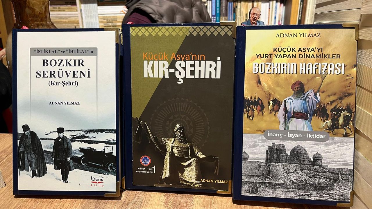 Adnan Yılmaz’ın fuarda satışa sunacağı ve imzalayacağı eserler arasında Kırşehir ve çevresinin tarihsel sürecini ele alan çalışmalar bulunuyor. Bu kapsamda, “İstiklal” ve “İhtilal”in Bozkır Serüveni (Kır-Şehri), Küçük Asya’nın Kır-Şehir, Küçük Asya’yı Yurt Yapan Dinamikler ve Bozkırın Hafızası İnanç-İsyan-İktidar adlı kitaplar ziyaretçilerin ilgisine sunulacak.