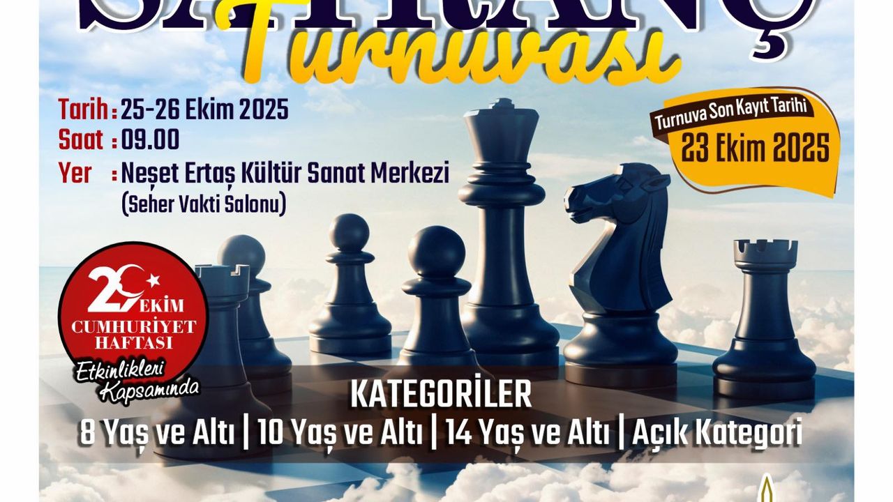 Kırşehir’de Cumhuriyet Bayramı coşkusu satranç tahtasına taşınıyor. 29 Ekim Cumhuriyet Bayramı Satranç Turnuvası, 25-26 Ekim 2025 tarihlerinde Neşet Ertaş Kültür Sanat Merkezi Seher Vakti Salonu’nda gerçekleştirilecek. Gençlik ve Spor Bakanlığı, Türkiye Satranç Federasyonu ve Kırşehir Belediyesi iş birliğiyle düzenlenen turnuvaya kayıtlar 23 Ekim’e kadar online olarak alınacak.