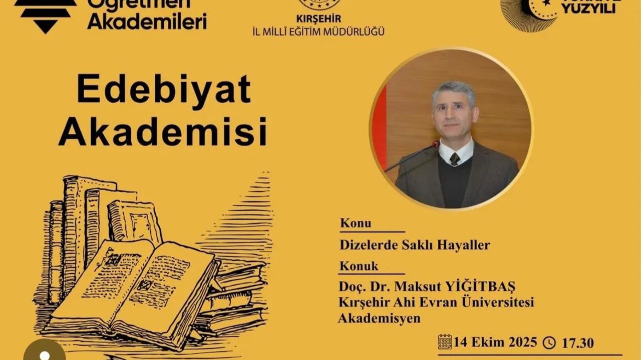 Kırşehir Öğretmen Akademileri, ‘Dizelerde Saklı Hayaller’ başlığıyla edebiyat tutkunu öğretmenleri bir araya getiriyor. Etkinlikte öğretmenler dizeleri yalnızca okumayacak, onları yaşayacak ve kendi yorumlarıyla yeniden yazacak. Katılımcılar dizelerde saklı duyguları ve hayalleri keşfederek satırlara kendi iç seslerini yansıtacak.