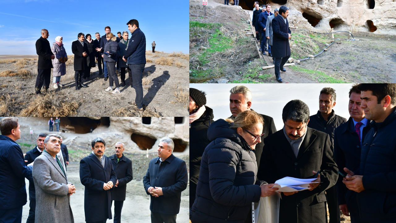 İlk olarak Dulkadirli Yeraltı Şehri’ni ziyaret eden Vali Demiryürek ve beraberindeki heyet, burada yürütülen restorasyon ve kazı çalışmaları hakkında bilgi aldı.