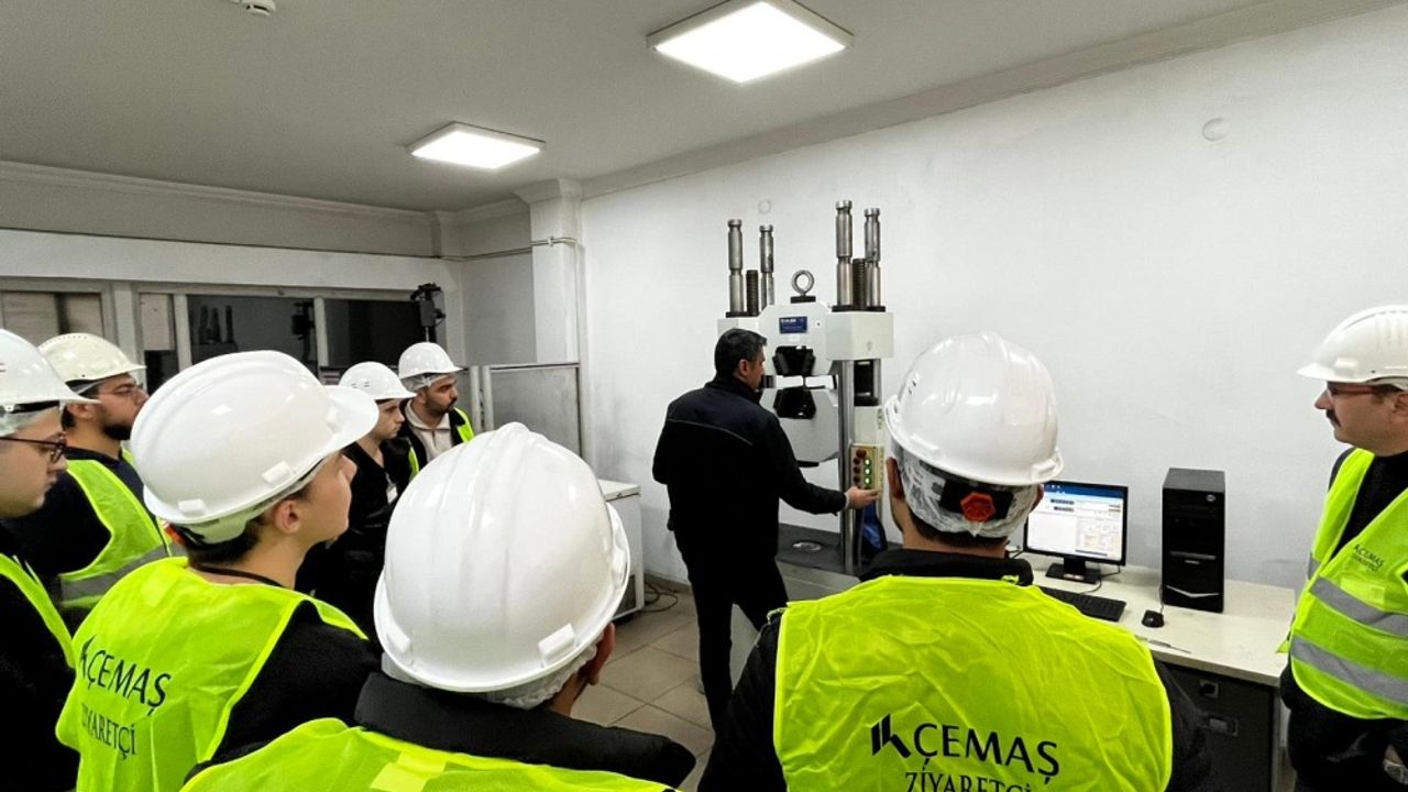 Kalite Kontrol Müdürü Serkan Kaya, öğrencileri kalite kontrol biriminde ağırlayarak mikro yapı incelemesi, çekme testi ve sertlik ölçüm cihazlarının kullanım süreçlerini anlattı. Öğrenciler, üretimde kullanılan tasarım süreçlerini gözlemleyerek SolidWorks programının endüstrideki uygulamalarını yerinde inceleme fırsatı buldu.