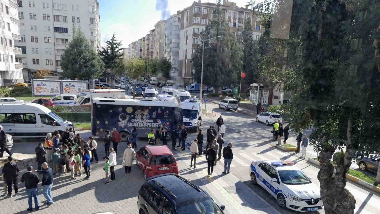 Çorum’da kitap fuarına giden öğrencilerin bulunduğu belediye otobüsünün kamyona çarpması neticesinde meydana gelen kazada 22 öğrenci yaralandı.