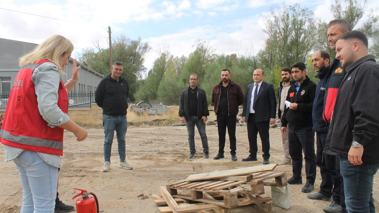 Teorik eğitimin ardından Mucur Belediyesi İtfaiye ekipleri tarafından yangın söndürme tatbikatı gerçekleştirildi.