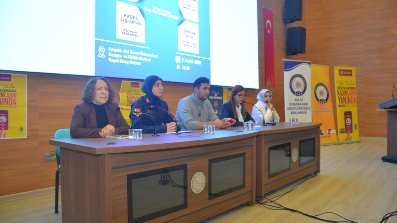 Kırşehir Ahi Evran Üniversitesi’nde, kadına yönelik şiddet ve hak ihlalleri üzerine kapsamlı bir panel düzenlendi. Katılımcılara 6284 sayılı Kanun ve Kadına Destek Uygulaması (KADES) hakkında bilgiler verilirken, Fatma Bacı Kadın Çalışmaları Uygulama ve Araştırma Merkezi’nin (FABKAM) projeleri ve kadının toplumsal statüsünü güçlendirmeye yönelik çalışmalar aktarıldı.