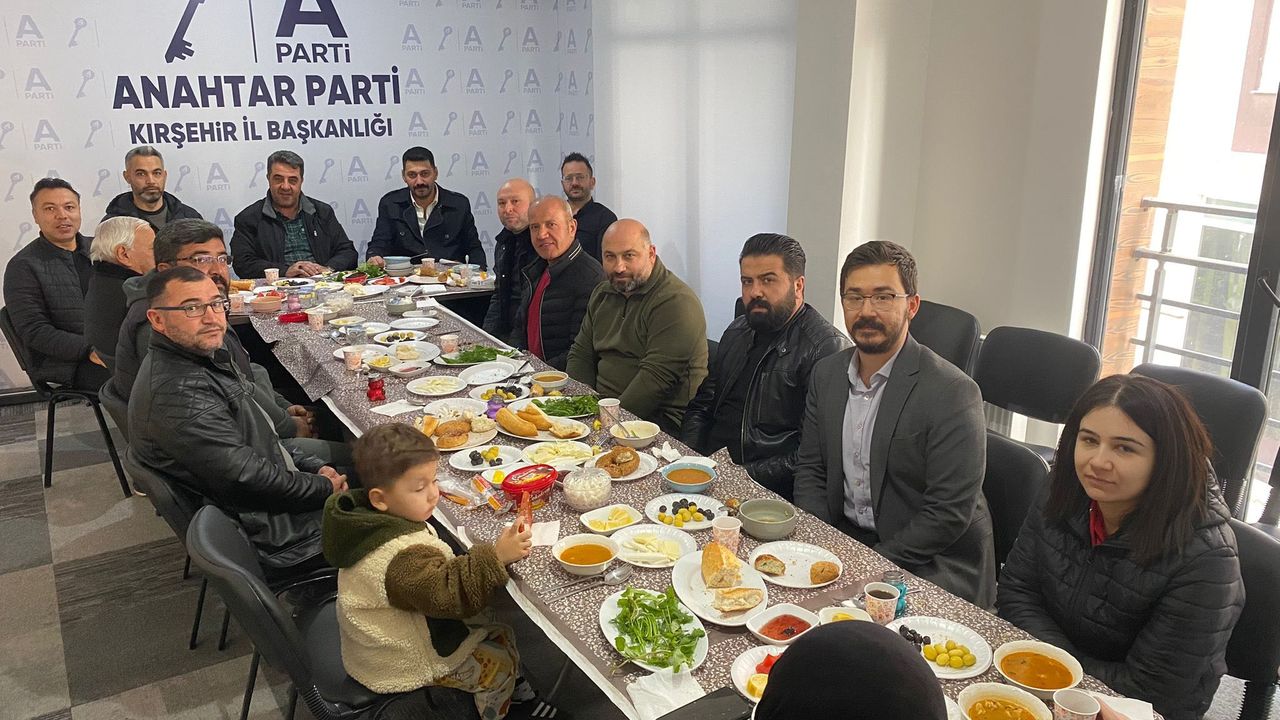Kırşehir’de Anahtar Parti İl Başkanlığı tarafından organize edilen kahvaltı buluşmasında parti teşkilatı bir araya geldi. İl Başkanı Cemal Kaya’nın ev sahipliğinde gerçekleştirilen toplantıya parti üyeleri ve teşkilat mensupları yoğun katılım sağladı. Kırşehir’in merkez ve ilçelerine yönelik sorunların ele alındığı buluşmada, geleceğe dönük yol haritası detaylı şekilde masaya yatırıldı.
