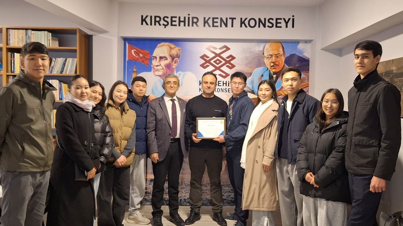 Programın ardından Kazak Öğrenci Topluluğu, Kırşehir Kent Konseyi’ni ziyaret ederek, destek ve katkılarından dolayı teşekkür belgelerini takdim etti. Öğrenciler, özellikle Kent Konseyi Başkanı Müfit Göçen ve Genel Sekreter Ömer Duran’a nazik ziyaretleri ve anlamlı takdirleri için teşekkür etti.