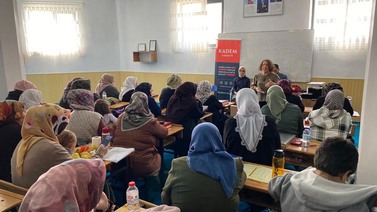 KADEM (Kadın ve Demokrasi Derneği) Kırşehir Temsilciliği, Kezban Zeliha Eraslan Kur’an Kursu’nda anlamlı bir eğitim programı gerçekleştirdi. “Güven Toplumunun İnşası” ve “Sosyal Destekler ile Kamuya Erişim” konularının ele alındığı programda alanında uzman hocalar, katılımcılara şiddetin psikolojik, hukuki ve manevi boyutlarını aktardı.