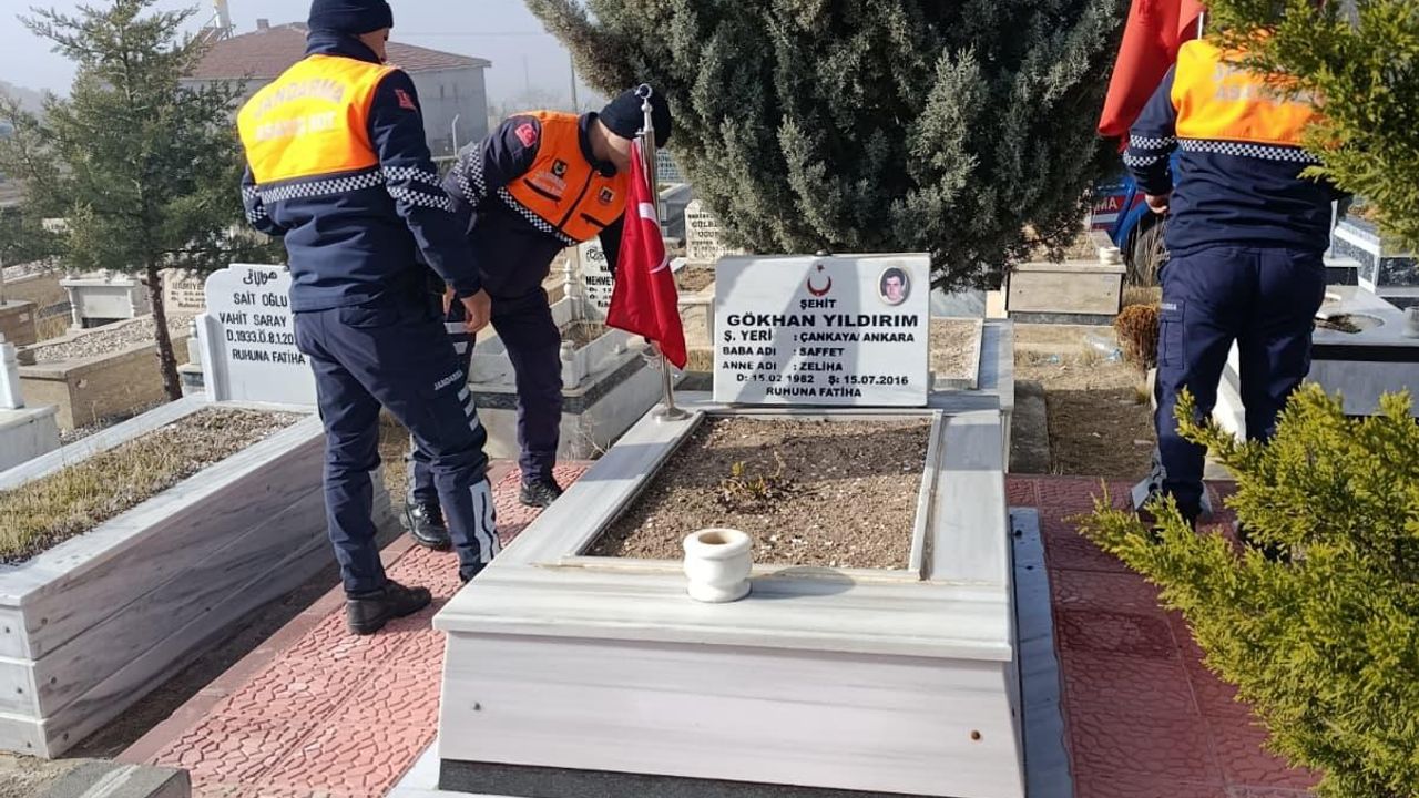 Kırşehir İl Jandarma Komutanlığı, aziz şehitlerin hatırasını yaşatma ve gelecek nesillere aktarma amacıyla yürüttüğü faaliyetleri aralıksız sürdürüyor. Jandarma personeli, Kaman ve Boztepe’deki şehit kabirlerini düzenli olarak ziyaret ederek mezarların bakımını, temizliğini ve bayrak değişimlerini titizlikle gerçekleştiriyor.