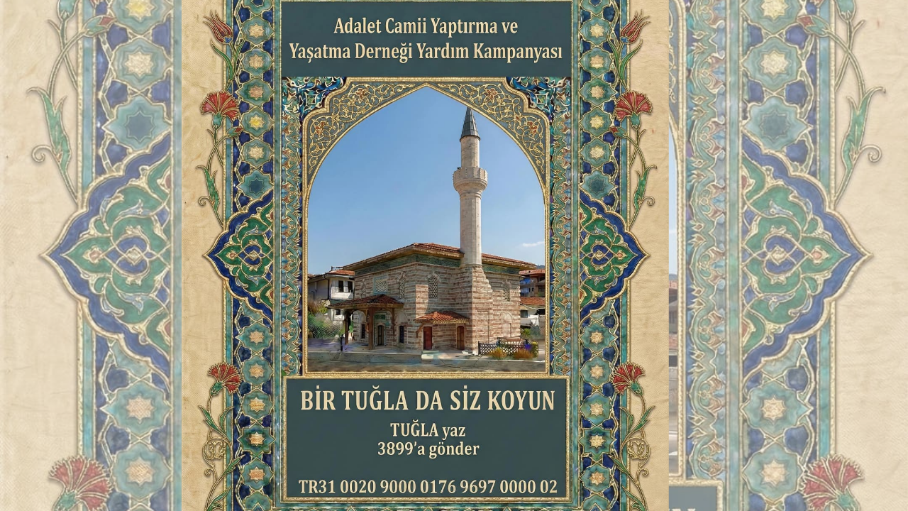 Kırşehir’de yapımı devam eden Adalet Camii için Adalet Camii Yapı ve Yaşatma Derneği tarafından yardım kampanyası başlatıldı. “Bir Tuğla da Siz Koyun” sloganıyla duyurulan kampanya kapsamında vatandaşların SMS ya da banka yoluyla bağış yapabileceği bildirildi.