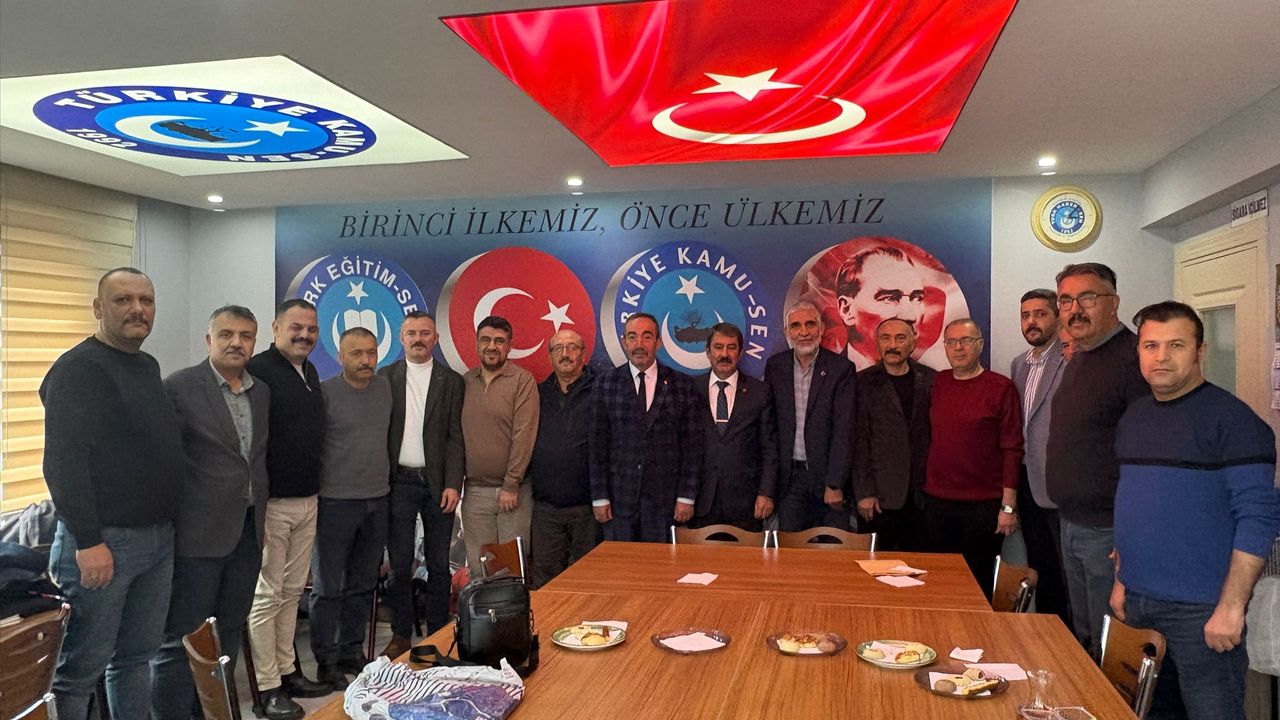 Türkiye Kamu-Sen Teşkilatı İl Başkanı Yusuf Aydın, Türk Sağlık-Sen Şube Başkanı Erol Aslan, Türk Büro-Sen Şube Başkanı Kamil Altun ve Türkiye Kamu-Sen’e bağlı iş kollarının başkanları, Türk Eğitim-Sen Kırşehir Şube Başkanı Hüdai Pakel’i ziyaret etti. Kırşehir’de gerçekleşen görüşmede sendikal çalışmalar, teşkilat yapısı ve ortak mücadele başlıkları ele alındı. Ziyaret, Türkiye Kamu-Sen çatısı altında yürütülen faaliyetlerin değerlendirilmesine zemin oluşturdu.