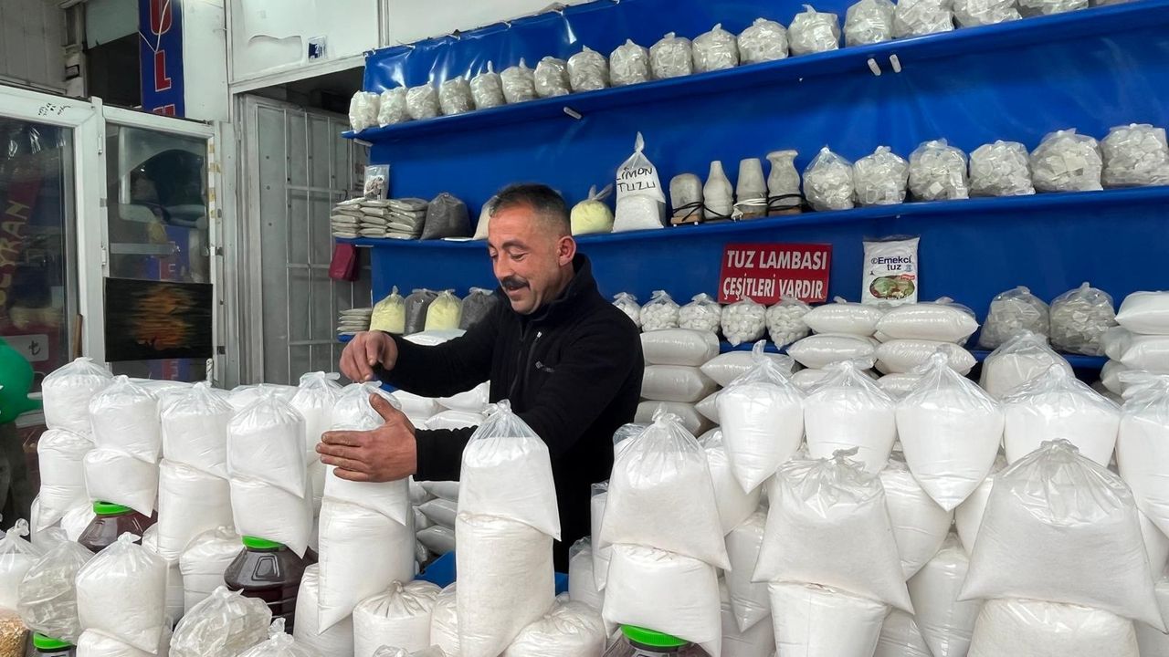Esnaf Salih Türkmen “Eskiden 5-10 kilo bazen çuvallarla alınırdı. Fiyatların artması nedeniyle son zamanlarda 2,5 kiloluk kaya tuzlarının satışı arttı” dedi.