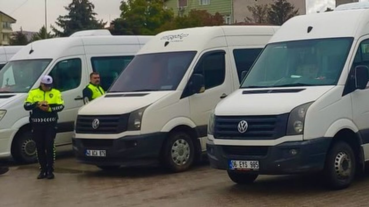 Denetimler sırasında servis araçlarındaki güvenlik donanımları, zorunlu ekipmanlar ve sürücü belgeleri titizlikle kontrol edildi.