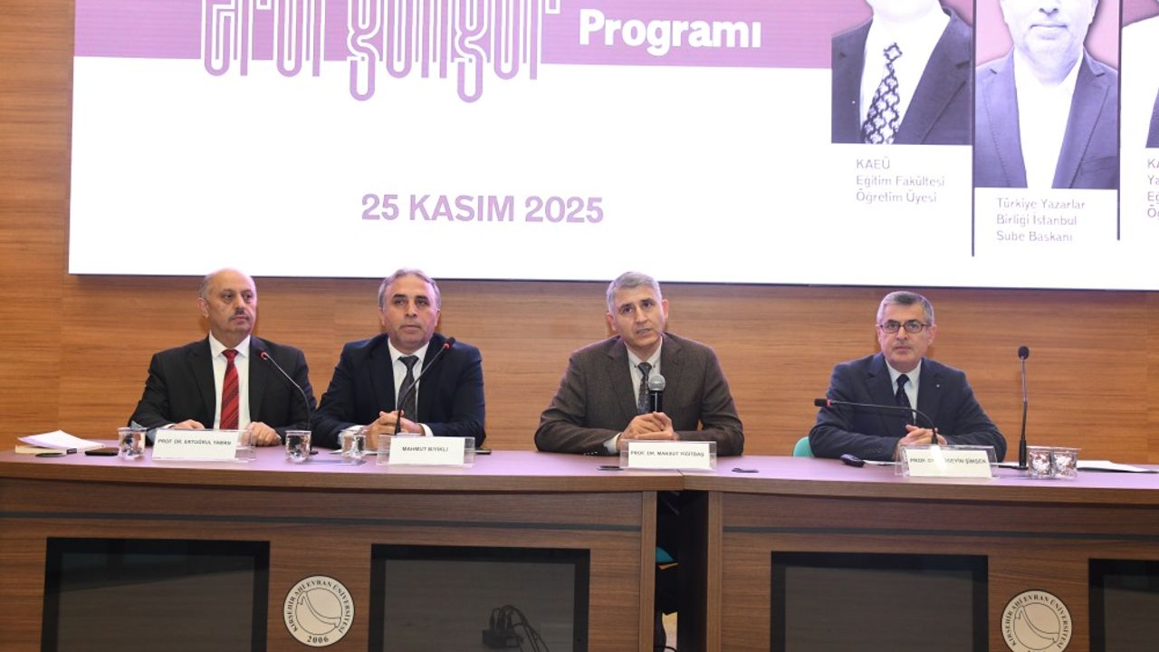 Ardından Prof. Dr. Maksut Yiğitbaş’ın moderatörlüğünde panele geçildi. İlk sunumu Rektör Yardımcısı Prof. Dr. Hüseyin Şimşek gerçekleştirdi. ‘İnsan, Toplum ve Eğitim Üçgeninde Erol Güngör’ün Düşünceleri’ başlıklı sunumda Şimşek, Güngör’ün Kırşehir’in yetiştirdiği çok yönlü ve derinlikli bir fikir insanı olduğunu vurguladı.