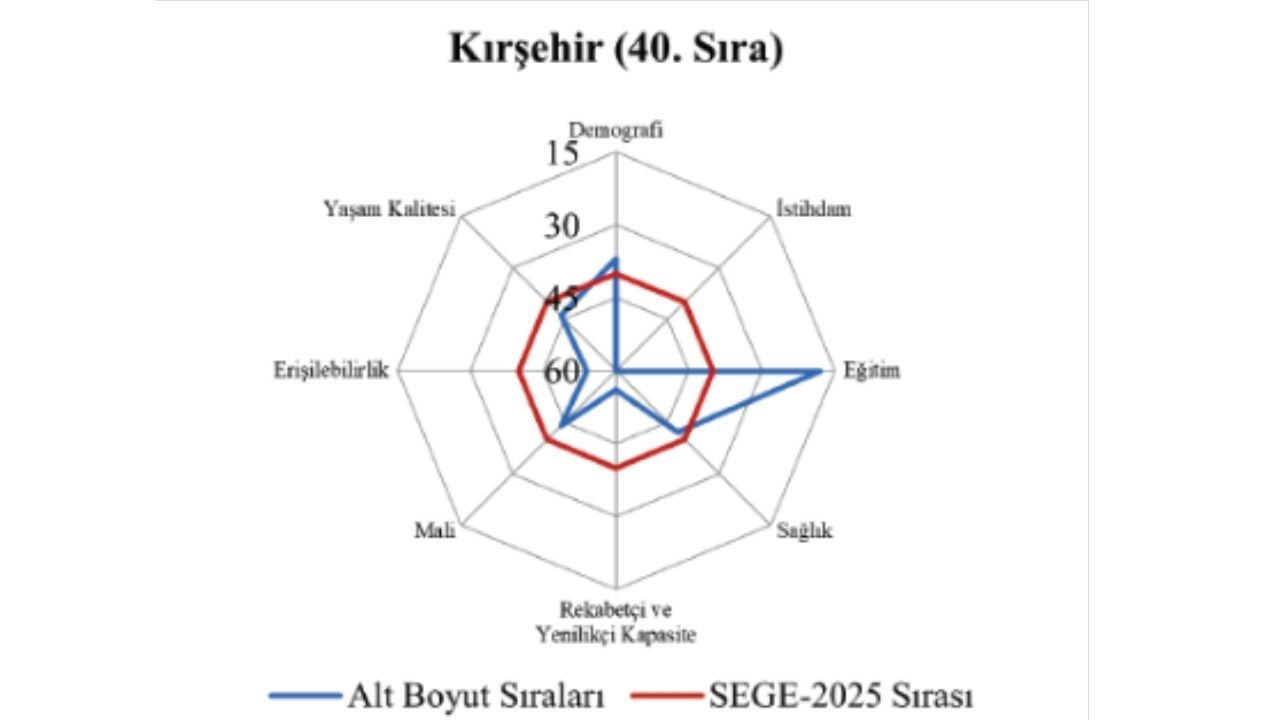 İl SEGE-2025 sonuçları, Kırşehir’in mevcut sosyo-ekonomik durumunu ortaya koyarken, geleceğe dönük stratejik planlamalar için de temel veri sunmaktadır. Kırşehir’in 40. sıradaki konumu, ilin gelişmişlik alanlarında bazı güçlü yönler ve geliştirilmesi gereken alanlar bulunduğunu gösteriyor. Bu sonuçlar, ilin sosyal ve ekonomik planlamalarında yol gösterici nitelikte değerlendirilmiştir.