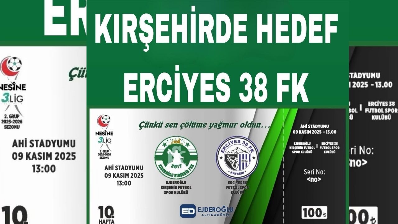 Nesine 3. Lig 2. Grup 10. haftasında Kırşehir’de heyecan dorukta. Ejderoğlu Kırşehirspor, 09 Kasım 2025 Pazar günü saat 13.00’te Ahi Stadyumu’nda Kayseri temsilcisi Erciyes 38 FK’yı ağırlayacak. Ligde play-off hedefini sürdüren Kırşehirspor, konuk ekip Erciyes 38 FK karşısında galibiyet arayacak.