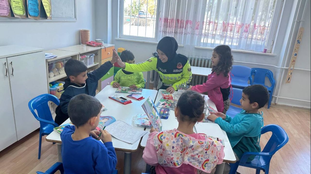 Kırşehir İl Jandarma Komutanlığı’na bağlı İlçe Jandarma Komutanlıkları emrinde görevli Asayiş Timleri ve Trafik Jandarma ekipleri, öğrenci kardeşlerle bir araya gelerek jandarmanın görevlerini tanıttı. Ekipler, öğrencilere yaya yolu kullanımı, trafik güvenliği ve genel trafik kuralları hakkında bilgiler verdi.