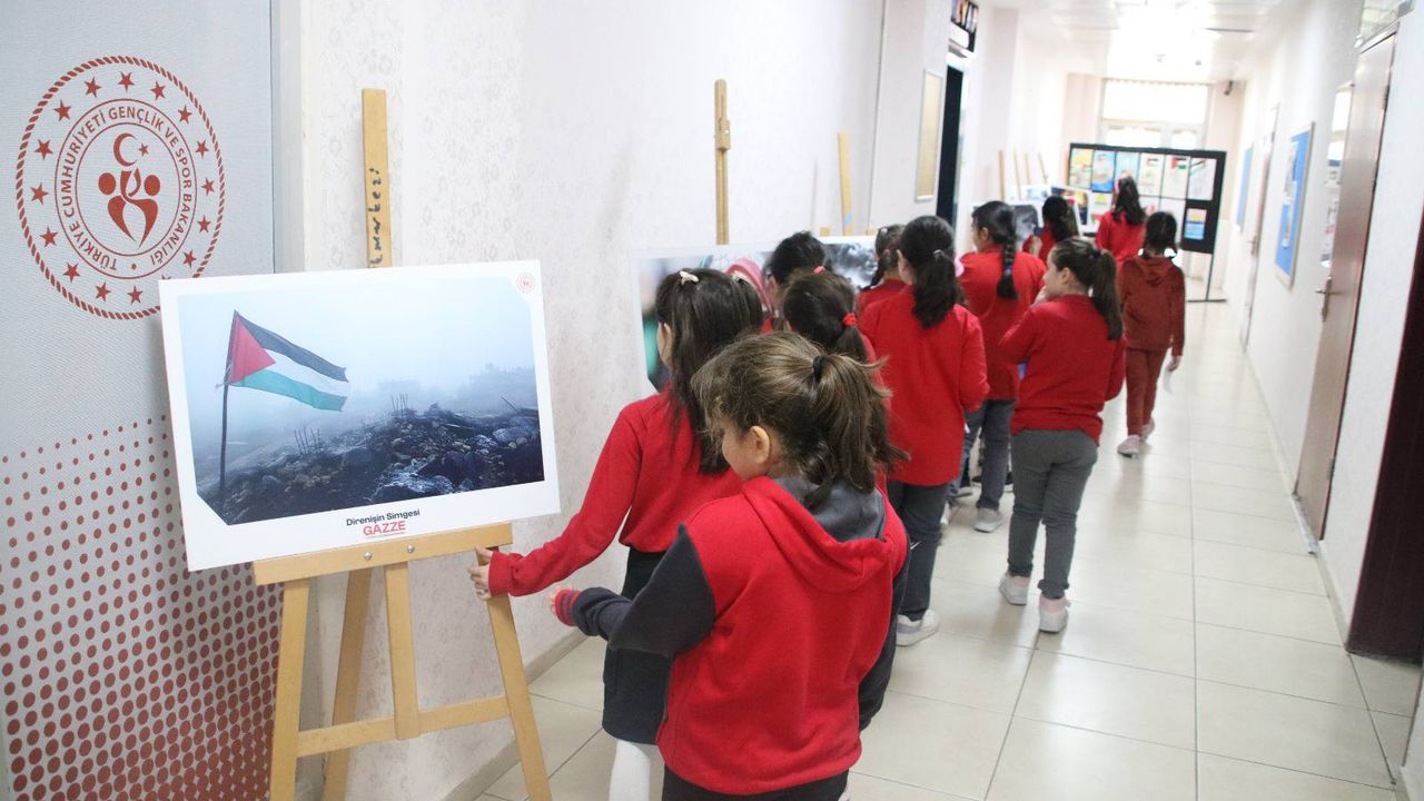“Okullar Merkezimizde Gençlik Merkezleri tanıtım ve ziyaret programları kapsamında Gençlik Merkezimizi ziyaret eden öğrencilerimize Gazze'de yaşanan savaş ve insan hakları ihlalleri sonucunda zarar gören çocukların ve gençlerin yaşadıkları dramı toplumun vicdanına sunmak, gençlerimizin empati duygusunu geliştirerek farkındalık oluşturmak, barış ve kardeşlik mesajını paylaşmak amacıyla Gençlik Merkezimizde oluşturulan 'Gazze Temalı Resim ve Fotoğraf Sergisi'ni gezdirdik.”