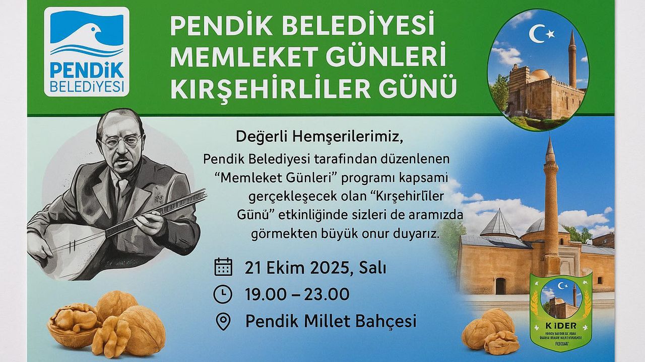 Pendik Belediyesi tarafından gerçekleştirilen Memleket Günleri kapsamında, “Kırşehirliler Günü” etkinliği yarın Pendik Millet Bahçesi’nde düzenlenecek. Program, saat 19.00’da başlayıp 23.00’e kadar sürecek.