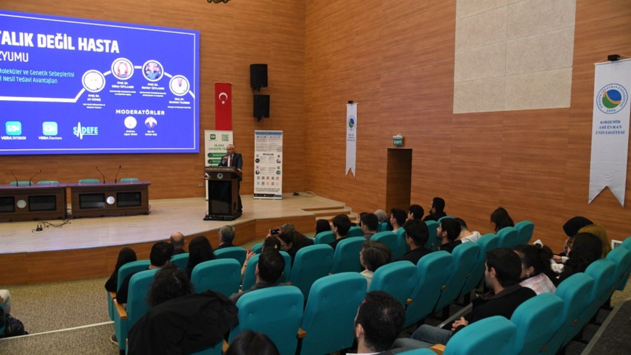 Kırşehir Ahi Evran Üniversitesi, VERA İntergen, VERA Doctors ve Sağlık ve Sosyal Hizmetler Dernekleri Federasyonu (SADEFE) işbirliğiyle düzenlenen ‘Hastalık Değil Hasta’ sempozyumu, 10 Kasım 2025 Pazartesi günü Ahi Evran Kongre ve Kültür Merkezi Neşet Ertaş Salonu’nda gerçekleştirildi. Sempozyuma, Kırşehir Ahi Evran Üniversitesi Rektör Yardımcısı ve Tıp Fakültesi Dekanı Prof. Dr. Ali Güneş, Genel Sekreter Dr. Öğr. Üyesi Hüseyin İlter, Prof. Dr. Alper Cihan, Op. Dr. Orhan Koç, Prof. Dr. Gülay Ceylaner, Prof. Dr. Serdar Ceylaner, Doç. Dr. İbrahim Yıldırım ile akademik ve idari personel ve çok sayıda öğrenci katıldı.